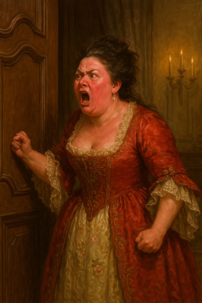 Los ecos retumbaban mientras las doncellas temblaban, las plumas caían de los tocados, y los centinelas desviaban la mirada para no cruzar sus ojos con la furia que allí se desbordaba.