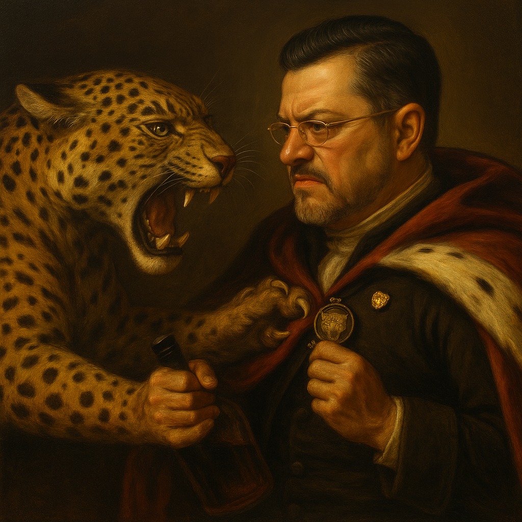 Y como último acto de esta opereta de quinta, el Rey cruzó los mares hasta Galolandia, para en un convite de nobles distraídos por los océanos, ofrecer al monarca galo su pin del Jaguar, como si la criatura silvestre hubiese dado su bendición a semejante circo. Un jaguar, símbolo de biodiversidad profanada, usado como amuleto diplomático por quien permite la tala, el saqueo y el envenenamiento de su Reino.