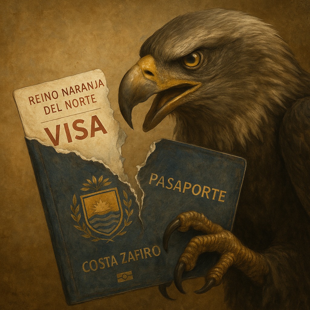 Ayer, como un trueno que retumba tras la calma, la Corte del Norte Naranja activó una segunda ola de sanciones: fueron selladas las cancillerías personales del presidente del Parlamento de los Suspiros, Rodrigo Ratias —hermano del Orarías Ratias— y del magistrado de la Justa Sala del Cuarto, Pablo Redondo, conocido como El Padre. La noticia llegó primero vía la Oficina del Correo Imperial, minutos antes de que sus destinatarios la leyeran en sus propios buzones oficiales.
