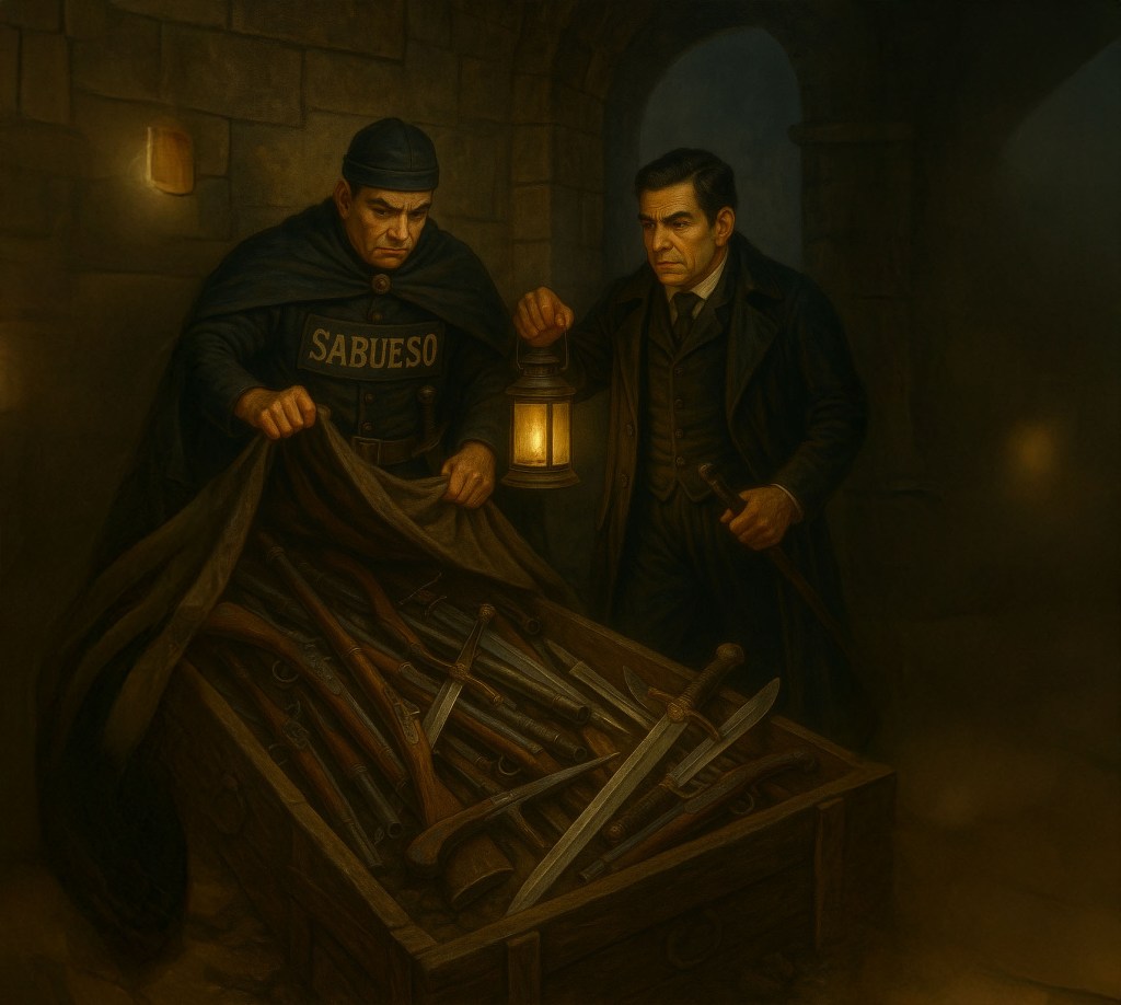Guario Zarza Mora, su Guardián Mayor, asegura que todo está en regla, que el llamado es legal y prudente. Pero el vulgo ya no traga relatos. Las calles de Costa Zafiro murmuran que las armas vienen del norte, y no sólo con el viento, sino con el polvillo blanco del comercio maldito. Los Sabuesos del Tribunal han encontrado fusiles en rincones del Reino donde sólo florecía la pobreza. Y donde florece el Guarismo, crecen los Escuadrones Militombos.