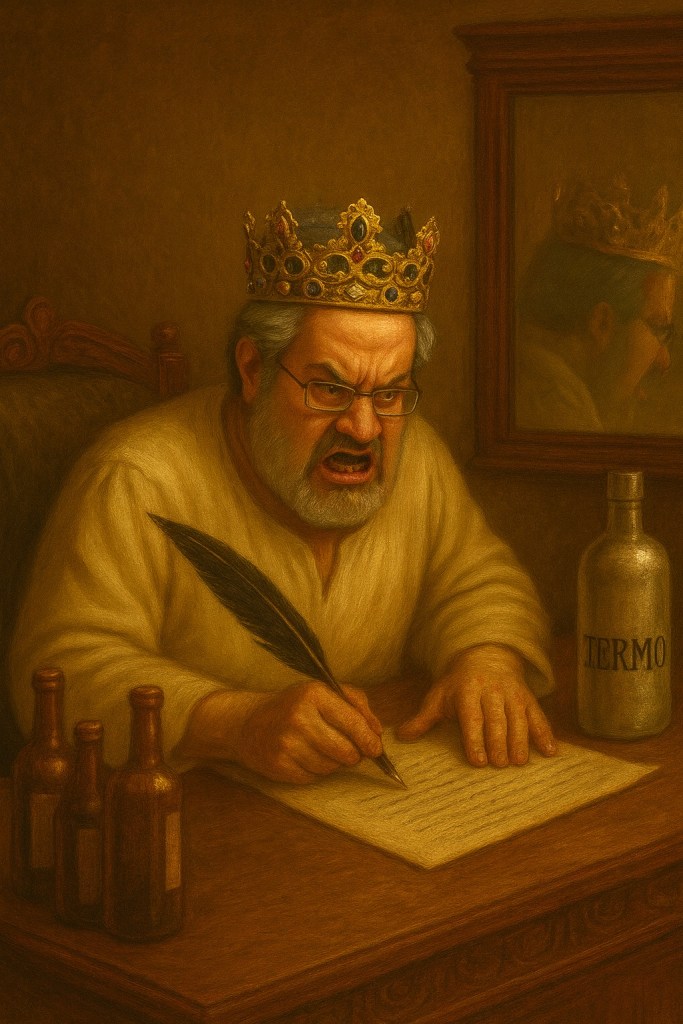 Finalmente, Majestad, agradezco vuestro interés en mi seguridad. Soy dichosa de vivir bajo la mirada de huestes tan apasionadas. Os prometo, como vos lo hacéis al decir que no pagáis troles, así como vuestra Corte hace caso a los mandatos técnicos de los maestros expertos del reino, así como es tu hidalguía y tu garbo, y tu fresco aliento, así mismo es que yo no volveré a mencionarte en mis crónicas. Mas os confieso: temo más a la continuidad del guaro que a los gritos de tus huestes de lumpen. Pues la continuidad del guaro sería la ruina de las cosechas, la quiebra de las campanas, la resaca del reino entero.