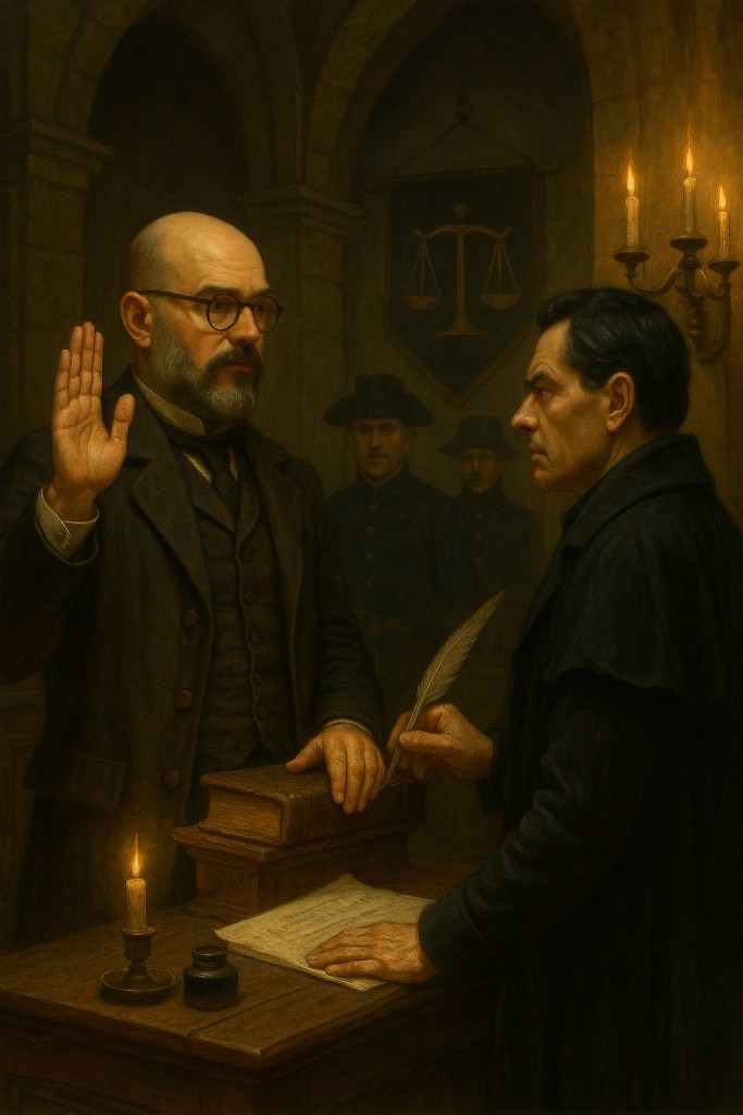 Si he de decir lo que vi, diré que este pergamino de denuncia de Cristo el Vúlgaro no viene solo. Viene con el murmullo de muchas gargantas que aprendieron la lección primera de las plazas libres, aquello de que la verdad no se negocia y que ninguna Bóveda, por grande que sea, puede comprar la luz del mediodía. Si el Rey Guarito I sueña con callar testigos a punta de cuentas por pagar, despertará en la sala donde los suspiros se vuelven votos y los votos, veredicto. Allí no vale el termo ni los gritos contra sus lacayos de paga. Allí pesa la palabra y el Reino, cansado de trucos, querrá saber si lo que llamaron conjuro era no más el viejo crimen de coaccionar al que habla.