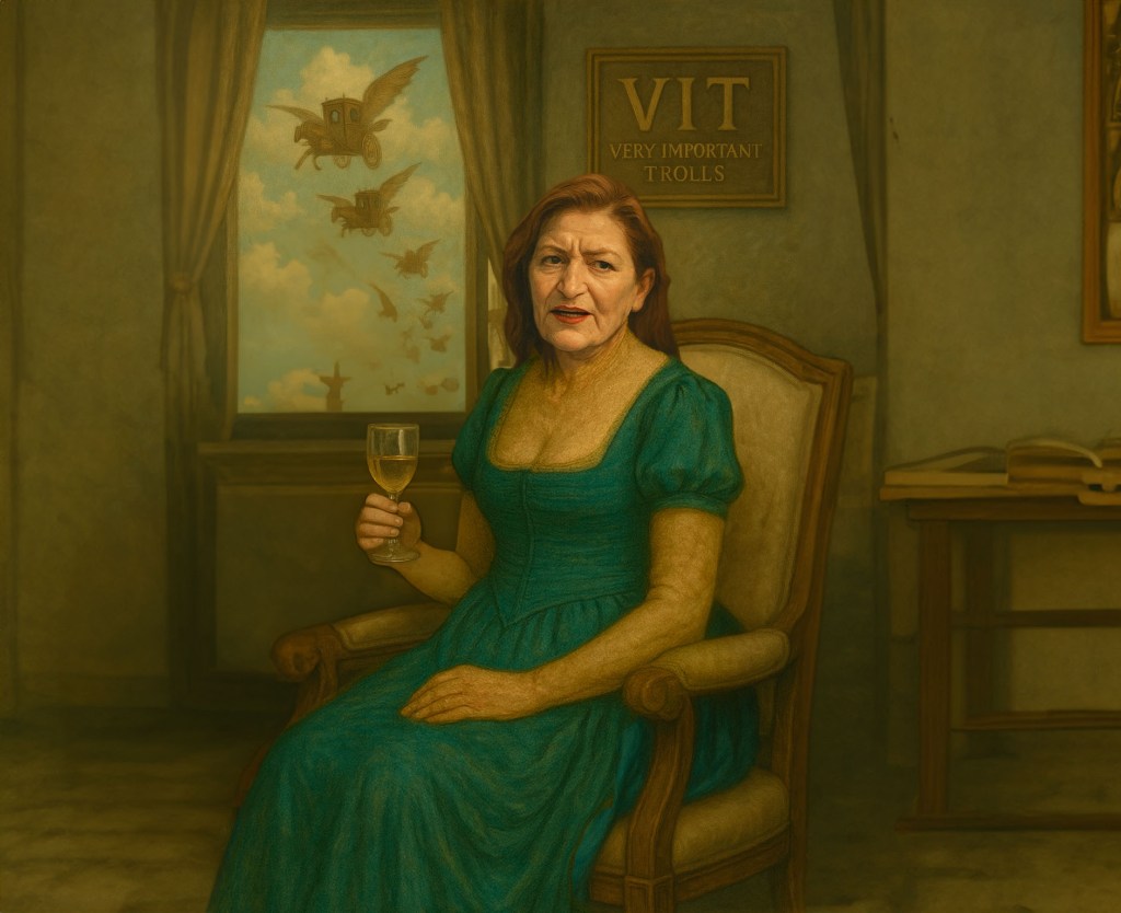 Operadora del turquesa. Tejedora de troles. Sirvienta del Guaro. Ajena al honor y amiga del poder sin fronteras.